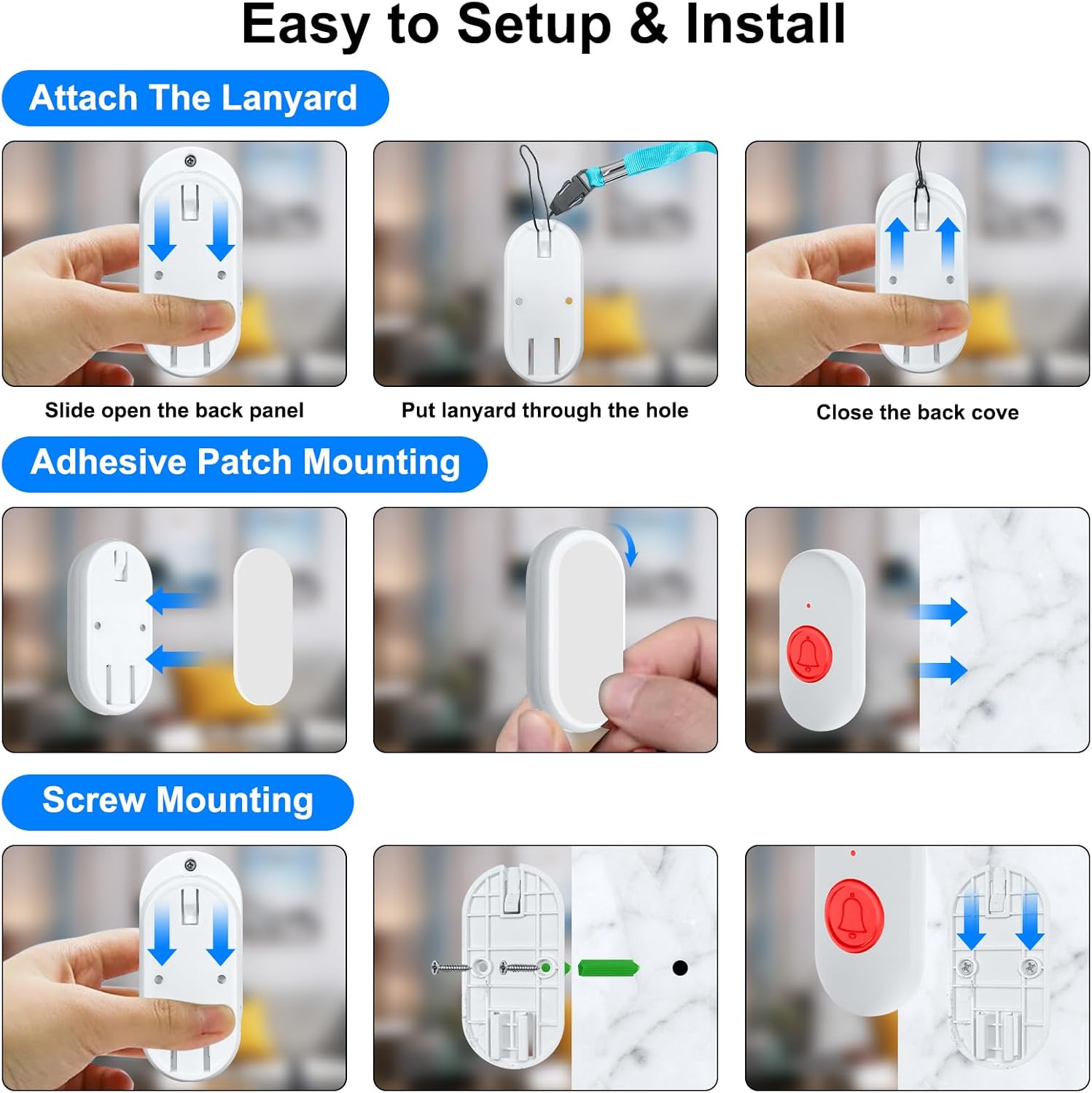 【Praktische Verwendung】Ideal für den Einsatz als Alarm für diejenigen, die schnell Hilfe benötigen, wie ältere Menschen, Kinder, Behinderte, schwangere Frauen oder Patienten, krank, drücken Sie einfach die Ruftaste, um rechtzeitige und rücksichtsvolle Pflege zu erhalten, Es kann auch als Türklingel verwendet werden. Weit verbreitet in Haus, Krankenhaus, Gemeinde, Restaurant, Büro und so weiter.