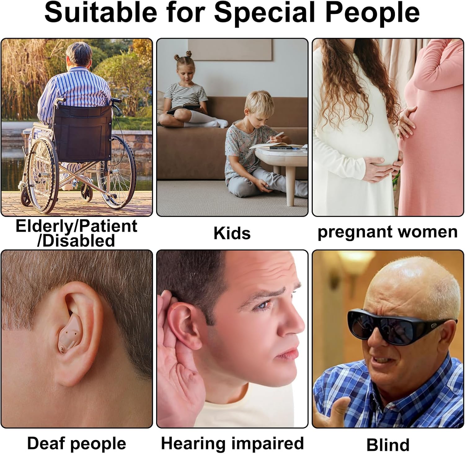 Geeignet für Ältere/ Patienten/ Behinderte, Taube, Blinde, Schwangere, Kinder, Hörgeschädigte