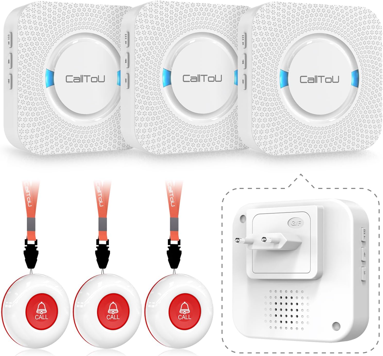 [Notrufknopf für senioren] 3 Empfänger 3 Notrufknopf. Ermöglichen Sie Pflegekräften und Bewohnern die Freiheit und stellen Sie gleichzeitig sicher, dass weiterhin Hilfe auf Knopfdruck verfügbar ist, ideal für ältere Menschen, Senioren, Patienten und Behinderte