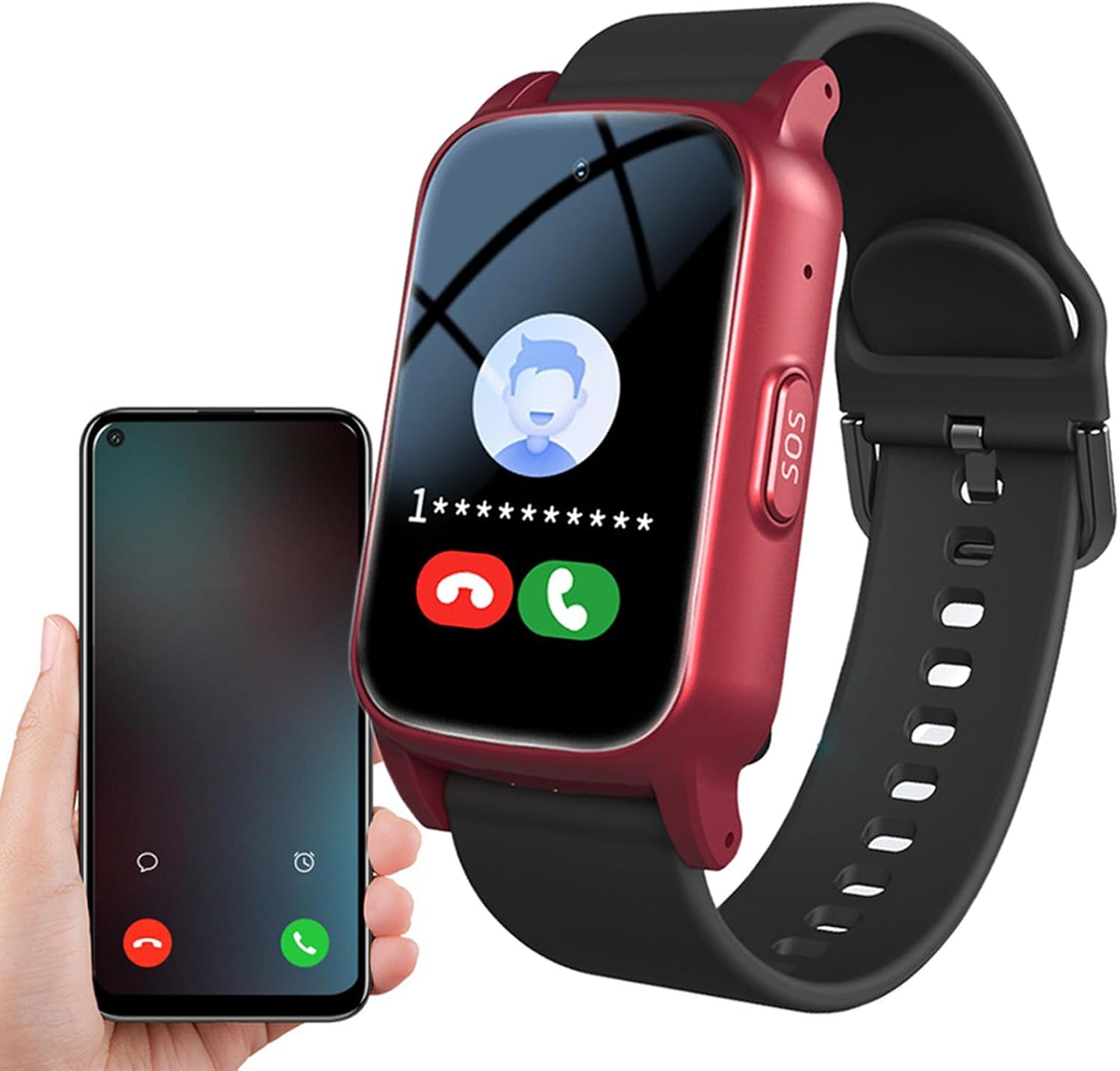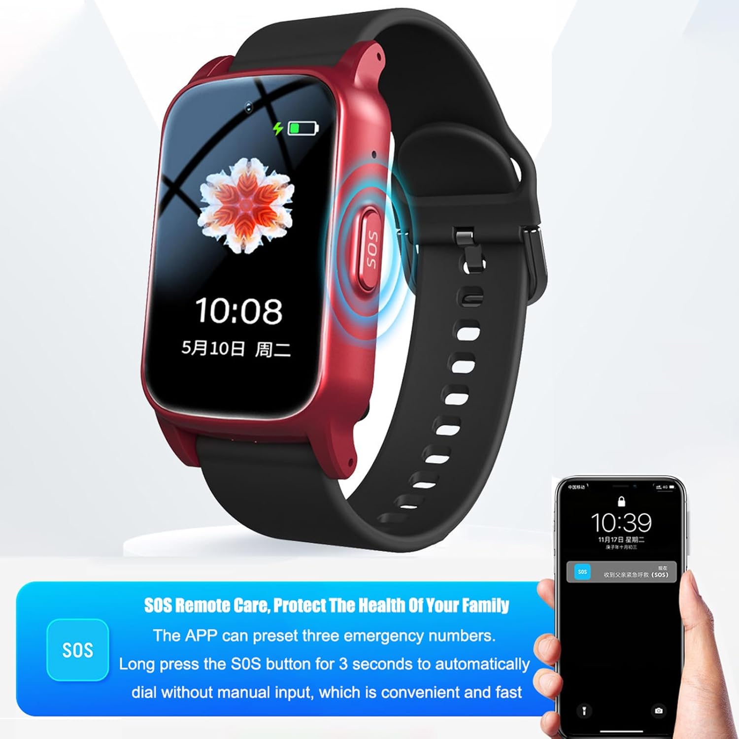 Weyot Senioren Notruf Armband mit Sturzsensor Notrufarmband fur Senioren mit GPS, Mit SOS-Notruftaste, Elektronischem Zaun, Notfallknopf für Senioren,Red